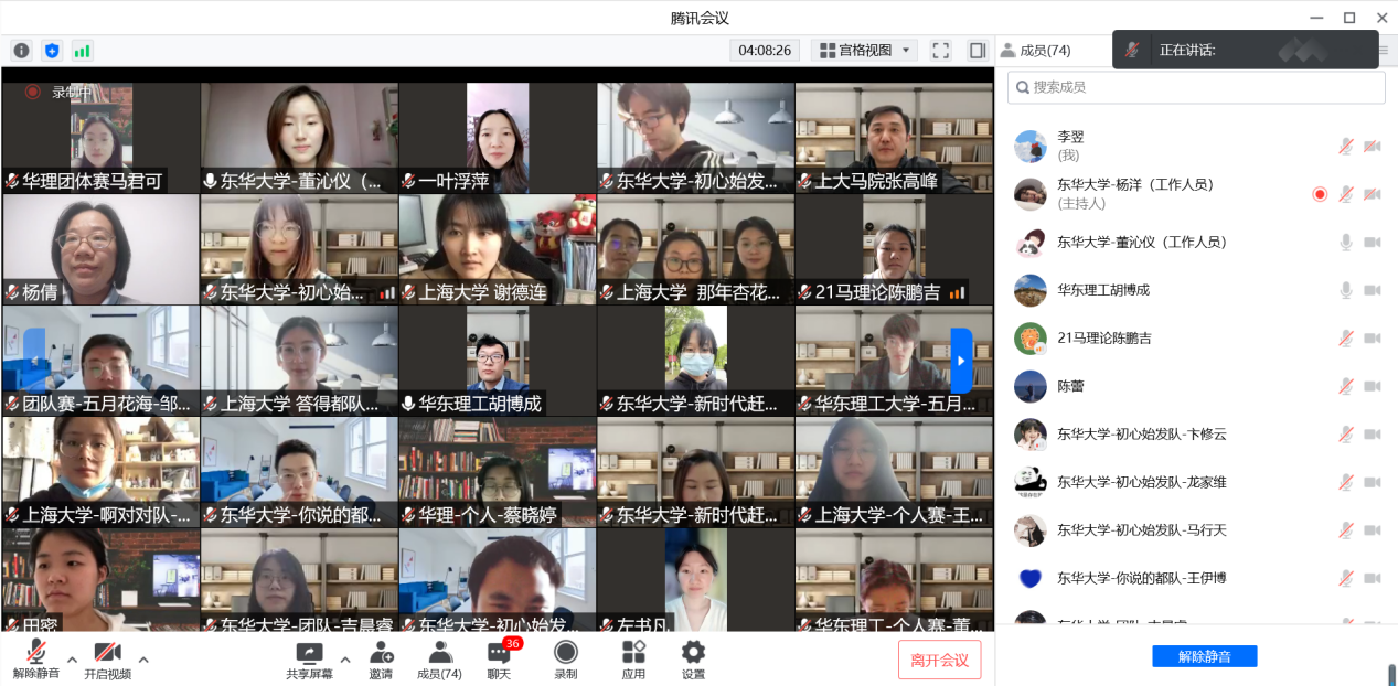 为深入学习贯彻习近平总书记在中国人民大学考察时的重要讲话精神,以实际行动迎接党的二十大胜利召开,4月30日,beat365中文登录入口、华东理工大学和上海大学三校beat365中文登录入口在线共同举办了“百年再出发,喜迎二十大——争做堪当民族复兴重任的时代新人”云知识竞赛活动。来自三校beat365中文登录入口的12名个人赛选手和9支团体赛队伍参加了线上知识角逐。beat365中文登录入口党委书记戴叶萍,青年教师白虎、任园,辅导员于小越;华东理工大学beat365中文登录入口党委副书记杨倩,习研会负责人、团委书记胡博成;上海大学beat365中文登录入口党委副书记、副院长张高峰,学生党建中心主任、研究生辅导员谢德连参加活动。活动由beat365中文登录入口马理硕党支部副书记董沁怡主持。