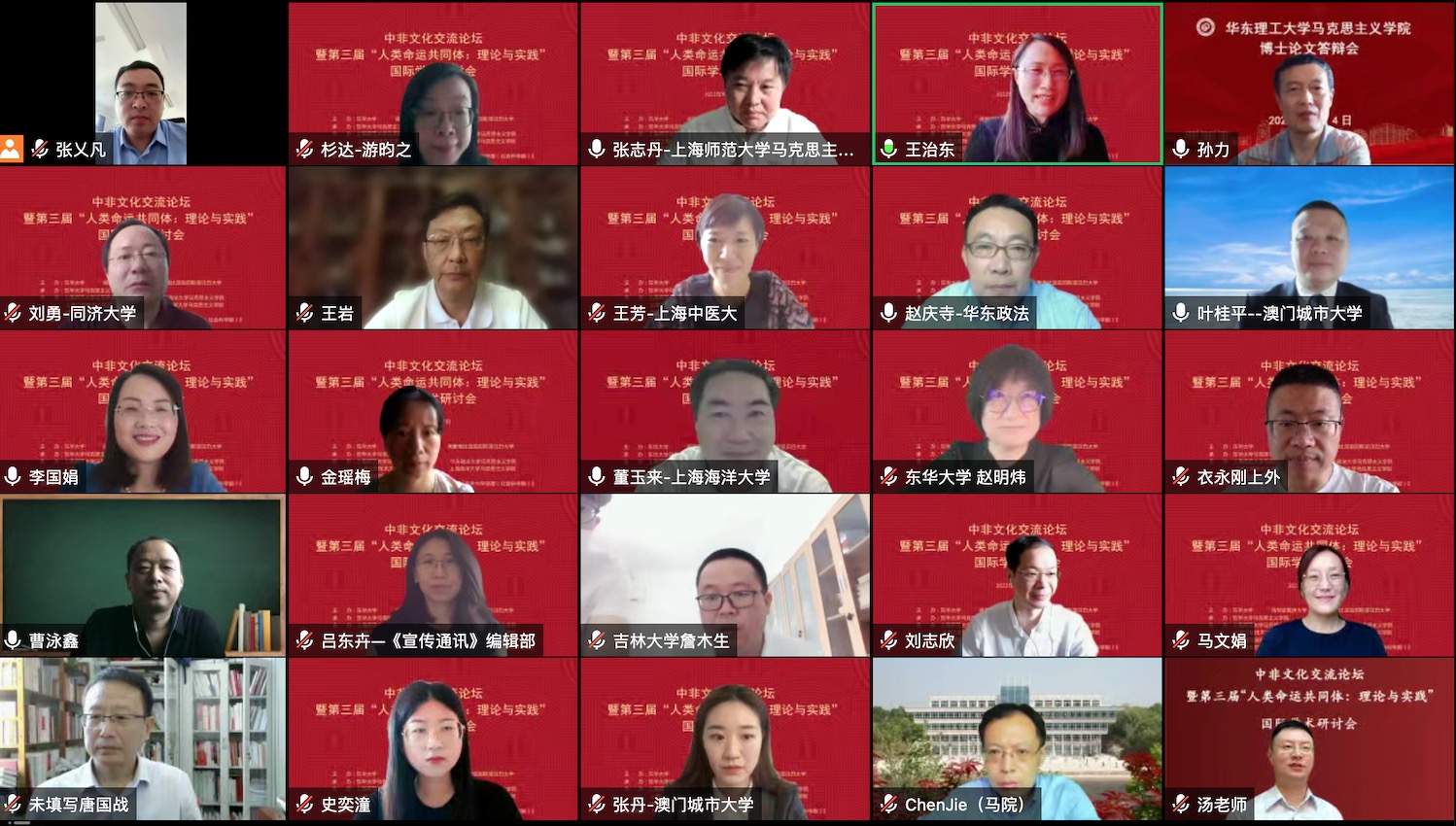 上午9时,研讨会在腾讯会议线上举行。本次国际研讨会的合办单位有上海师范大学beat365中文登录入口、华东政法大学beat365中文登录入口、上海工程技术大学beat365中文登录入口、上海海洋大学beat365中文登录入口、信阳师范学院beat365中文登录入口,协办单位有beat365中文登录入口马克思主义理论与当代实践研究基地、上海市习近平新时代中国特色社会主义思想研究基地beat365中文登录入口基地、上海高校思政课名师工作室(王治东工作室),《毛泽东邓小平理论研究》《上海宣传通讯》《beat365中文登录入口学报(社会科学版)》作为支持期刊参会。会议分为主旨发言会场和4个分会场,来自全国各地的线上参会人员有120多人。研讨会由分论坛主席、beat365中文登录入口院长王治东教授主持,她指出,中非文化交流论坛在第三年发生了整体结构性的改变,研究议题的增长性和专家学者的关注度较之以往有了新的突破,这也得益于多方的支持和参与。论坛关注年轻学者的成长,四个分论坛中有两个是提供给青年学者的。本次论坛收到了66篇稿件,经评委会评审,评出论文一等奖5人,二等奖8人,三等奖10人,优秀奖17人。