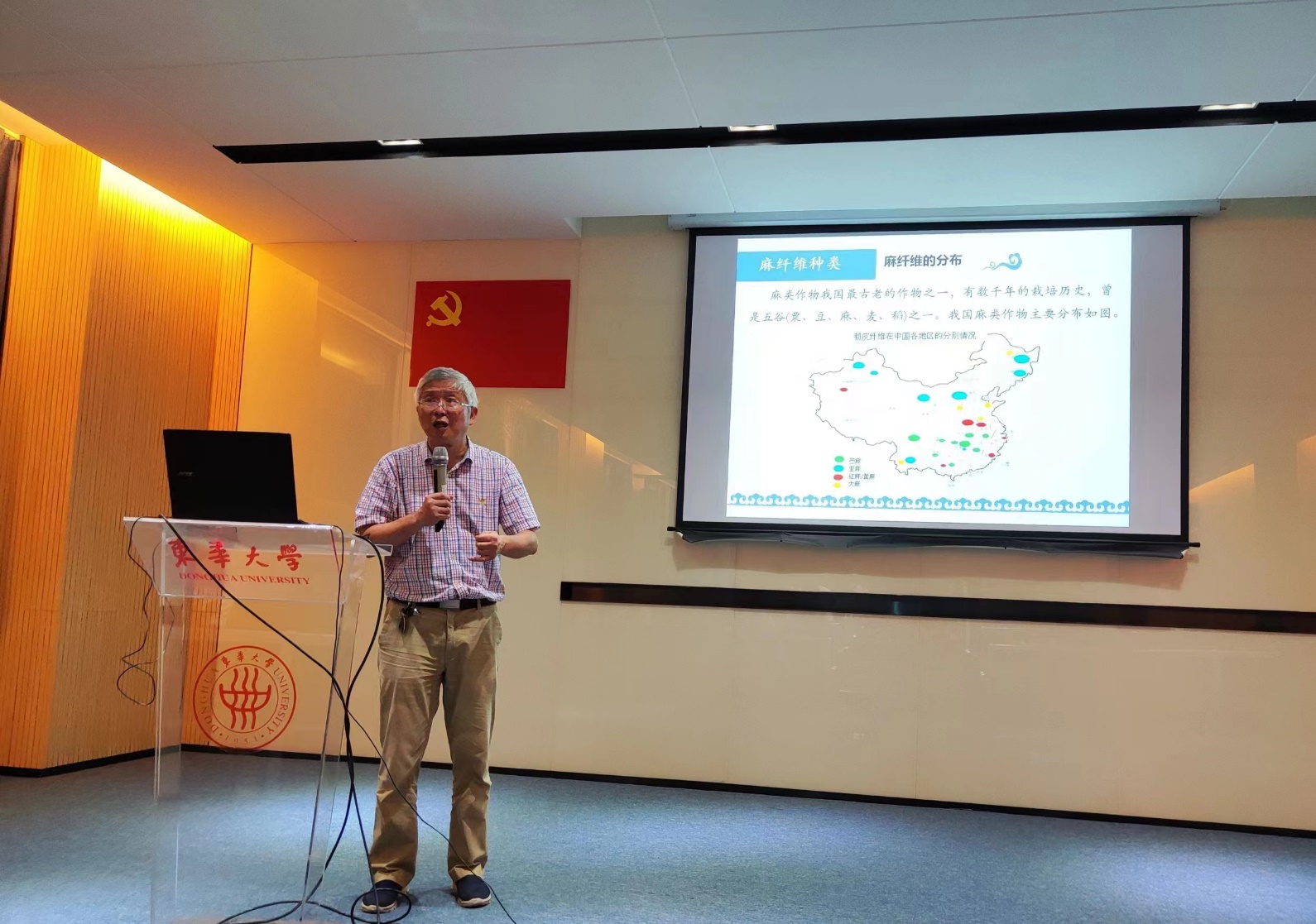 纺织早已突破服装和家用的局限,在各行各业都扮演了十分重要的角色。郁崇文老师在课程讲到,纺织品在航空航天、军工产业、建筑施工等领域都发挥了不可替代的作用,尤其是纺织品的创新利用给传统行业带来了新的生机,具有巨大的经济价值。 课程中,郁崇文老师向大家介绍了中国悠久的桑麻历史与文化。考古发现表明,我国劳动人民从公元前3600年前就开始从事桑麻生产,以素纱褝衣、夏布为代表的一批纺织品体现了我国古代高超的桑麻生产技艺。麻类作物是我国最古老的作物之一,有着数千年的栽培历史。麻分为韧皮纤维、叶纤维两大麻纤维,具有透气、凉爽、舒适等特点。麻在药用方面也具有较大的价值和功能性。郁老师以翔实的图表和数据向大家介绍了苎麻、亚麻、大麻等种类麻作物的药用价值和实际工业生产中发挥的重要作用。郁崇文老师指出,大麻纤维的吸声性能、罗布麻的远红外发射性能均是麻纺织物优秀的功能性的典型代表。