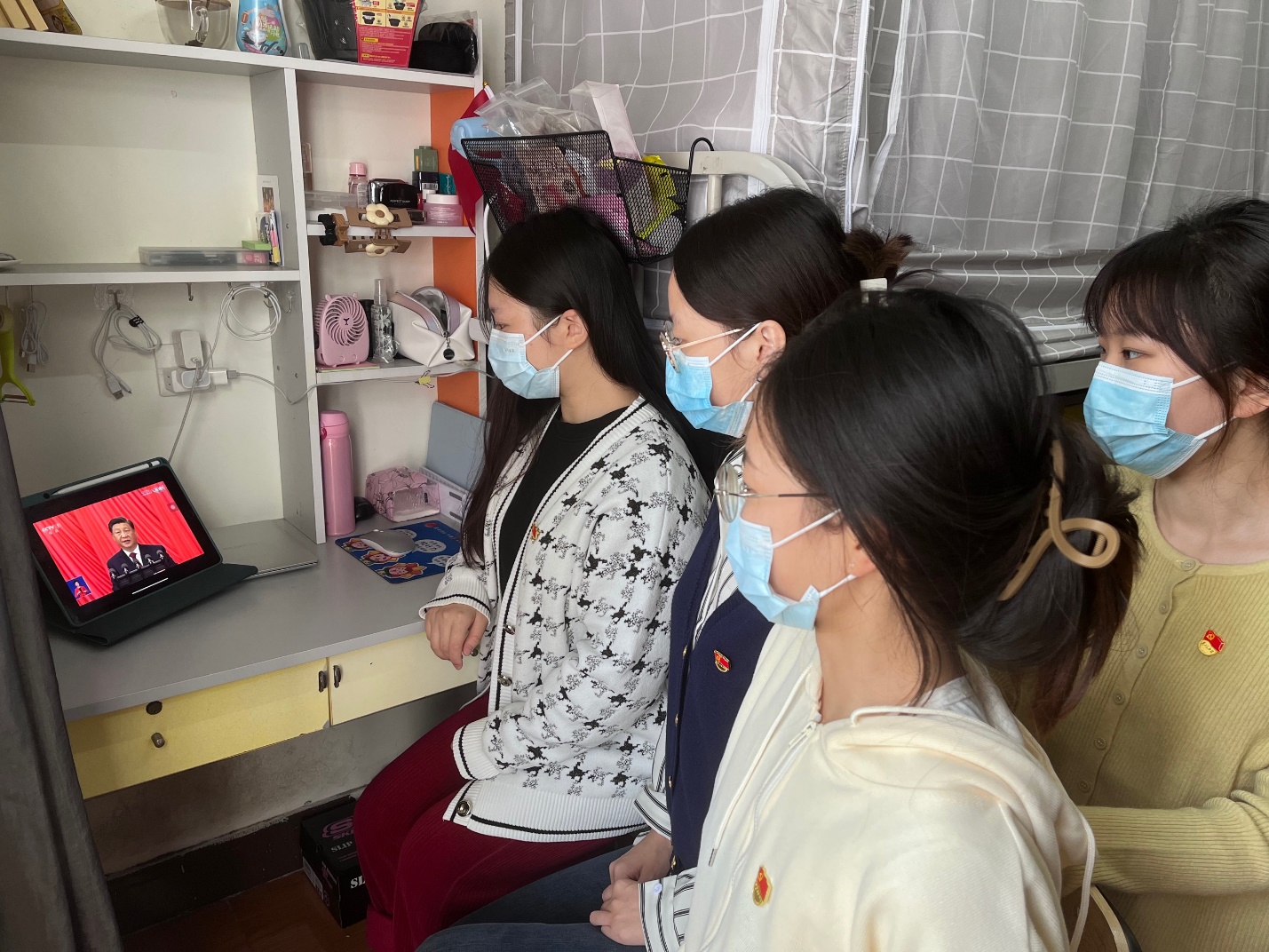 马理硕党支部研究生党员在寝室学习收看