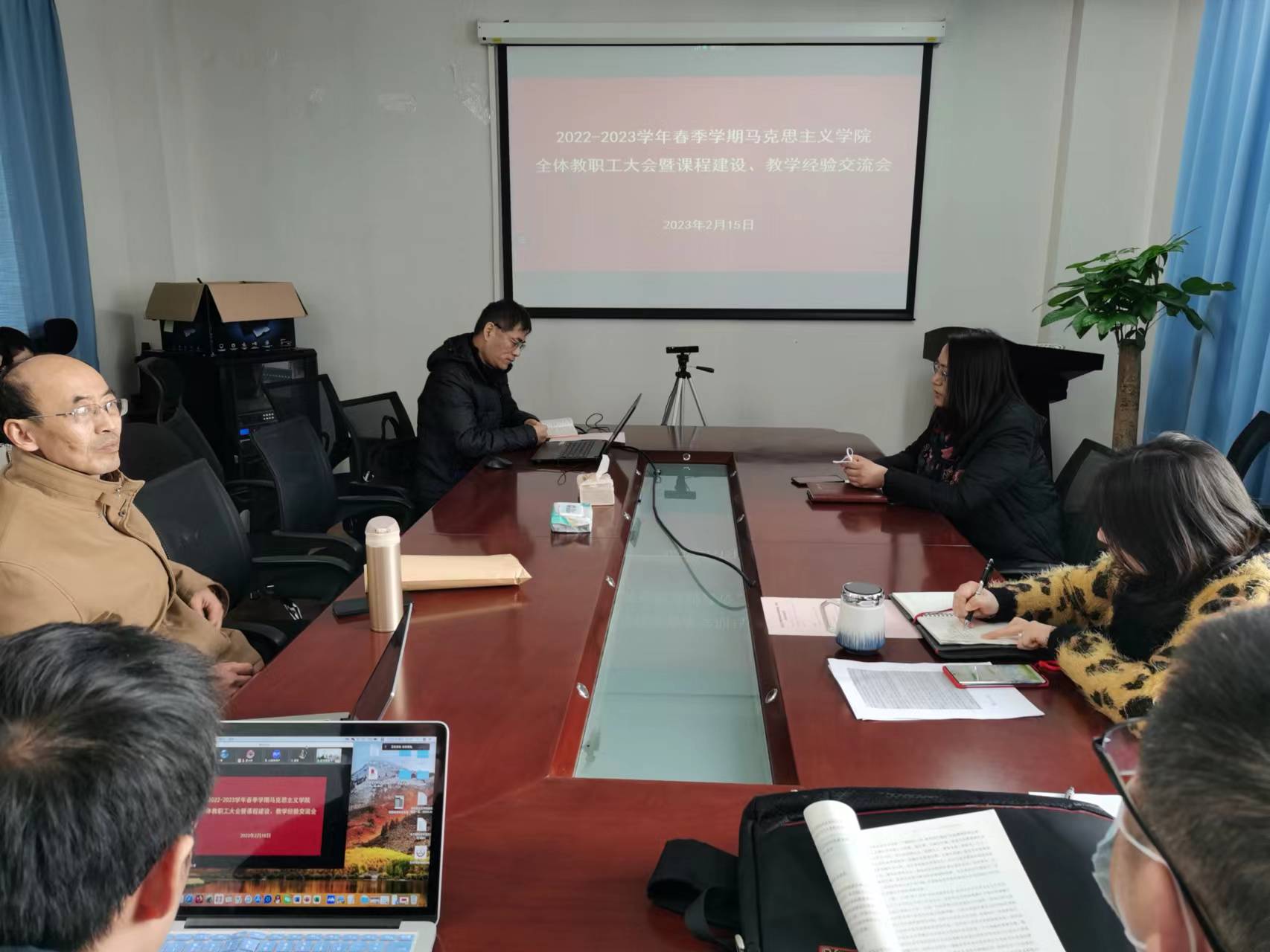踔厉奋发向未来,大展宏图开新局。为加强新学期各项工作部署,2月15日下午,beat365中文登录入口召开2022-2023学年春季学期全体教职工大会暨课程建设、教学经验交流会,学院领导班子及全体教职工通过线上线下相结合的方式参会,学院副院长陈向义教授主持会议。 会上,学院院长王治东教授讲话首先回顾了学院2022年的发展情况,指出各位老师经受住疫情考验,团结向上、奋发有为,学院在课程建设、学科建设和科研成果等方面取得了积极成果,但同时也要看到学院发展面临的挑战。新学期学校各项工作全面恢复线下,学院着重加强平台建设,积极争取发展资源,鼓励各位老师积极参与学院建设,切实为学院发展注入强大动力,促进学院发展的整体水平提升。 学院党委书记戴叶萍传达了学校防疫工作要求,对各位老师近年来对学院防疫工作的支持与配合表示感谢,各位老师接下来也要积极做好自我健康管理,接着带领大家学习《新时代高校教师职业行为十项准则》,强调各位老师要提高政治站位,本着高度的责任感、使命感,不断深化理论宣传阐释,切实提升思政课教学质量。 学院副院长陈向义教授部署新学期教学重点工作,要求各位老师严守政治和纪律底线,及时查看教务系统课表按时上课,确保新学期教学工作平稳有序,学院将聚焦思政课教学内涵各项要素,持续做好教学比赛、课程建设项目申报等工作,促进更多思政课教学成果产出。 随后,2022年上海市一流本科课程负责人、2022年上海市思政课教学大比武优秀教师开展课程建设、教学经验交流。
