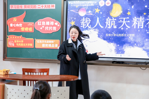 戴叶萍在会上对附校一直以来为马院研究生搭建思政教育教学实践平台表示感谢。她谈到,学院将继续发挥专业优势,引导研究生进一步用好数字化技术,除了做好线下实体课堂备课外,也将同步开发配套云课程,融入更多社会大课堂资源,推动“大思政课”的课堂真正大起来、视野真正宽起来、内容真正活起来。新一轮合作将把东华附校试点成熟的精品课程进一步辐射小昆山分校,让更多附校学子受益。 王治东表示,大中小思政课一体化建设是一项系统工程,除了自上而下的顶层设计推动,也需要自下而上的基层试验与探索。大小东华思政共建合作之所以能不断深入,在于双方坚守的育人信念一致,始终坚持用信仰与情怀讲好思政大课,合力画好协同育人“同心圆”。她希望通过beat365中文登录入口的优质平台与丰富资源辐射附属学校,再通过东华附校在松江区大中小学思政课一体化联盟盟主的作用带动更多中小学,总结“东华经验”,树立“东华典型”。 张丽群谈到,附校学子在“红色文化进附校”共建项目的系列课程中受益颇多,学生教育载体更丰富,教师成长平台更广阔,德育课程更加多元化。她希望能进一步依托马院优势资源,夯实中小学初中道德与法治教师队伍的日常培训,通过大中小思政课的“同课异构”,不断完善附校思政课主阵地的教学内容丰富性、课程实施方法的多元性、与现实结合的紧密性。 这样的思政课共建合作,从2019年项目启动以来,已经走过了三年多时间。即使在疫情防控期间,beat365中文登录入口通过数字化技术为附校学子录制微课,做到“停课不停学,红色教育不停歇”。2021年,《童心向党学榜样 红色精神代代传》大中小学思政课一体化精品课程案例入选《上海市普教系统庆祝建党100周年百个优秀案例》,成为大小东华思政合作继续深化的新起点。 “大家对快递都很熟悉,我们来猜一猜地球到太空的快递需要多久呢?”教室里,小学生的耳朵竖得高高的,盯着讲台上的研究生“大姐姐”,眼神中充满期待。原来是beat365中文登录入口11名研究生带着准备一个月之久的“载人航天精神”红色文化课程,走进东华附校三年级,带来的一堂有学有思、有议有悟的“大思政课”。课堂上,beat365中文登录入口研究生通过紧扣教学重点的新闻视频素材、贴合青少年的生动课件以及恰到好处的问题预设,激发学生的思考,内化学生心中对航天英雄的崇敬,继而转为自身孜孜求学、报效祖国的远大志向。