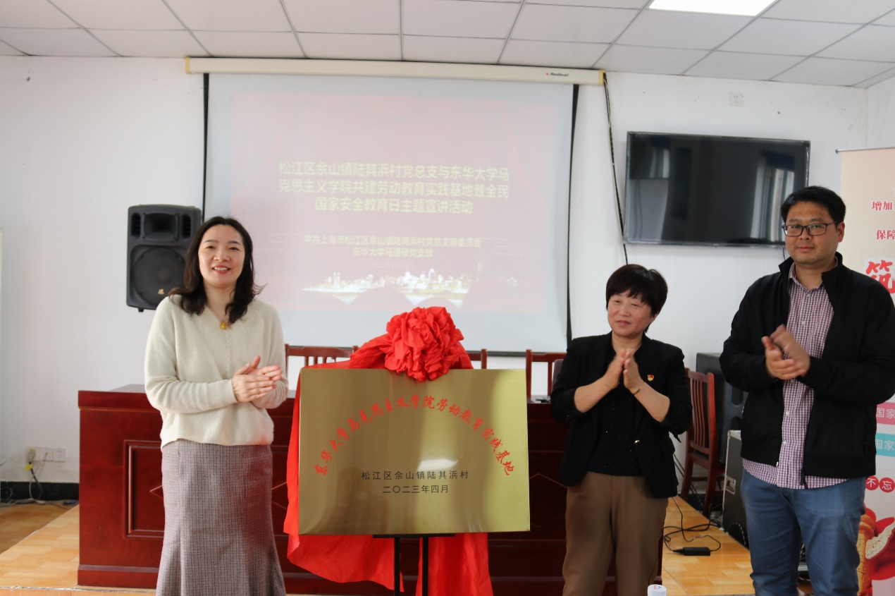 4月14日下午,beat365中文登录入口组织师生赴松江区佘山镇陆其浜村共建劳动教育实践基地,在陆其浜村委会举行揭牌仪式。学院党委书记戴叶萍,陆其浜村党总支书记、主任徐萍、出席活动致辞,并为实践基地揭牌。活动由陆其浜村党总支委员、副主任蔡毓豪主持,陆其浜村委及beat365中文登录入口相关负责人、研究生及村民代表参加。