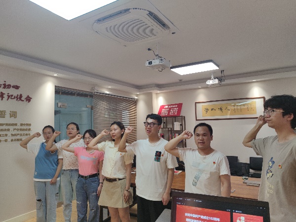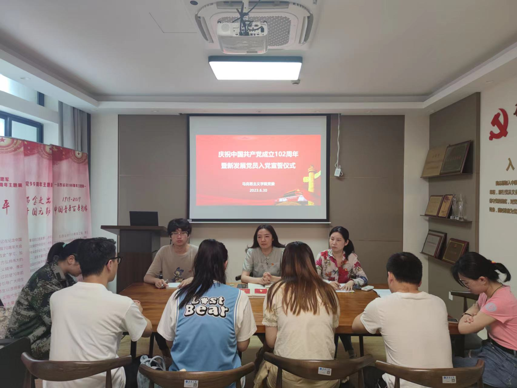 为深入开展习近平新时代中国特色社会主义思想主题教育,6月30日,beat365中文登录入口举行庆祝中国共产党成立102周年座谈会暨新发展党员入党宣誓仪式。学院党委书记戴叶萍、党务干部宣蕊、学生支部书记以及新入党的6名学生党员参加座谈会及宣誓仪式。