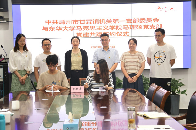 为深入开展学习贯彻习近平新时代中国特色社会主义思想主题教育,进一步学深悟透习近平新时代中国特色社会主义思想,体悟党的创新理论的真理力量和实践伟力,7月18日上午,beat365中文登录入口马理硕党支部赴浙江绍兴嵊州市,与甘霖镇机关第一支部签署合作共建协议。学院党委书记戴叶萍、甘霖镇党委副书记楼利洪,马理硕支部成员和甘霖镇党建办负责人等参会。 楼利洪对beat365中文登录入口师生表示热烈欢迎,介绍了甘霖镇遵循习近平总书记嘱托,以建设“富乐甘霖”党建品牌为抓手,致力于打造共同富裕先行示范乡镇,在党建引领经济社会高质量发展各方面取得的突出成绩,希望通过与高校党建联建,加强理论学习、文化传承、人才培育等方面合作交流,共同推进党建工作高质量发展。