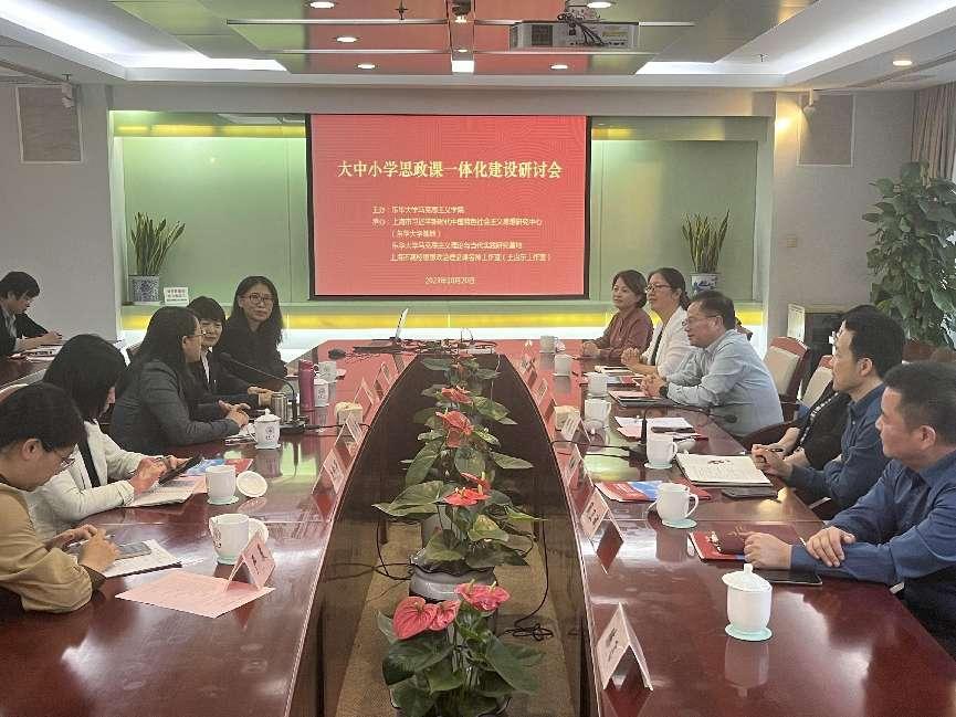 为进一步推进大中小学思政课一体化建设,扎实提升人才培养质量,2023年10月20日下午,beat365中文登录入口举办了“大中小学思政课一体化建设研讨会”。会议由上海市习近平新时代中国特色社会主义思想研究中心(beat365中文登录入口基地)、beat365中文登录入口马克思主义理论与当代实践研究基地、上海市高校思想政治理论课名师工作室(王治东工作室)承办。来自上海市教师教育学院、松江区教育学院、高校、中小学、期刊媒体的近二十位专家学者出席会议。会议由beat365中文登录入口院长王治东主持。