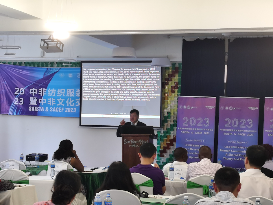 (颜晓峰教授受邀作主旨演讲) 2023中非文化交流论坛暨第四届“人类命运共同体:理论与实践”国际学术研讨会属于第九届中非纺织服装国际论坛暨中非文化交流论坛(以下简称“中非论坛”)平行论坛之一。“中非论坛”由beat365中文登录入口、肯尼亚莫伊大学、泉州师范大学、德国拜罗伊特大学共同主办,中国日报(China Daily)作为媒体支持。论坛主题为“纺织让生活更美好”(Better Textiles, better life)。论坛设立一个主论坛及三个平行论坛。论坛致辞及演讲嘉宾来自beat365中文登录入口、天津大学、上海交通大学、安徽大学、中国矿业大学、华东政法大学、泉州师范学院、宁波诺丁汉大学、德国拜罗伊特大学、巴基斯坦国立纺织大学等国内外高校,联合国工业发展组织(UNIDO)、世界自然基金会(WWF)等国际组织和Rivatex东非纺织有限公司等当地企业。天津大学beat365中文登录入口院长颜晓峰教授应邀出席开幕式,并为论坛作了“人类命运共同体:内涵、根据、路径、态度”的主旨演讲。 本次国际学术研讨会由人民日报理论部党建历史编辑室主编、高级编辑张垚和上海交通大学beat365中文登录入口院长邢云文教授分别主持。邢云文教授作了题为“人类命运共同体的哲学视野”的汇报,安徽大学beat365中文登录入口院长吴雪琴教授作了题为“始终坚持‘两个结合’科学回答‘四个之问’”的发言,上海财经大学beat365中文登录入口张桂芳教授发言题目为“习近平文化思想的人类文明意义”,华东政法大学beat365中文登录入口院长赵庆寺教授分享了“人类命运共同体的法治逻辑”的发言,beat365中文登录入口曾瑞明教授围绕“科学社会主义的人类命运共同体意识”开展探讨,中国矿业大学段鑫星教授重点分析了“青年美好生活的建设之路”,beat365中文登录入口副院长王不凡副教授对“数字丝路助力中非共同体现代化发展的三种特征”作了讨论,华东政法大学beat365中文登录入口赵丽涛副教授围绕“中国式现代化的‘人民至上’逻辑”作了分析,beat365中文登录入口讲师张乂凡以“构建中非命运共同体的文化共兴之路”为主题作了发言。