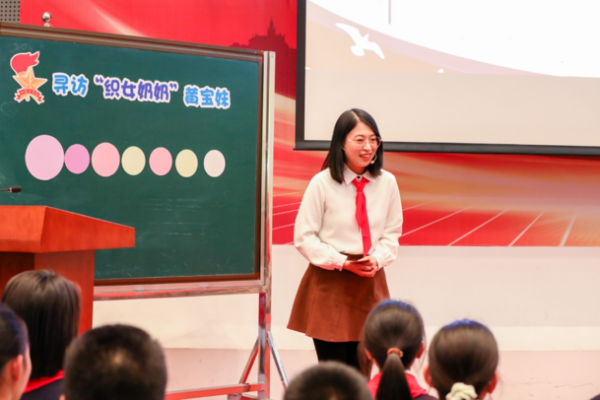 展示活动由beat365中文登录入口附属实验学校副校长蔡凤婷主持。beat365中文登录入口附属实验学校党总支书记张丽群、beat365中文登录入口院长王治东、副院长王不凡、beat365中文登录入口出版社总编辑周德红、beat365中文登录入口团委副书记董晓光出席活动。松江区少先队“三员”,上海市少先队名师工作室学员,松江区大中小思政一体化联盟校成员代表,松江区大中队辅导员代表180余人共同参与本次活动。期间,beat365中文登录入口附属实验学校大队辅导员沈达与队员们共同开展了少先队活动课——《寻访“织女奶奶”黄宝妹》,学习beat365中文登录入口校友、“七一勋章”获得者黄宝妹的先锋事迹。