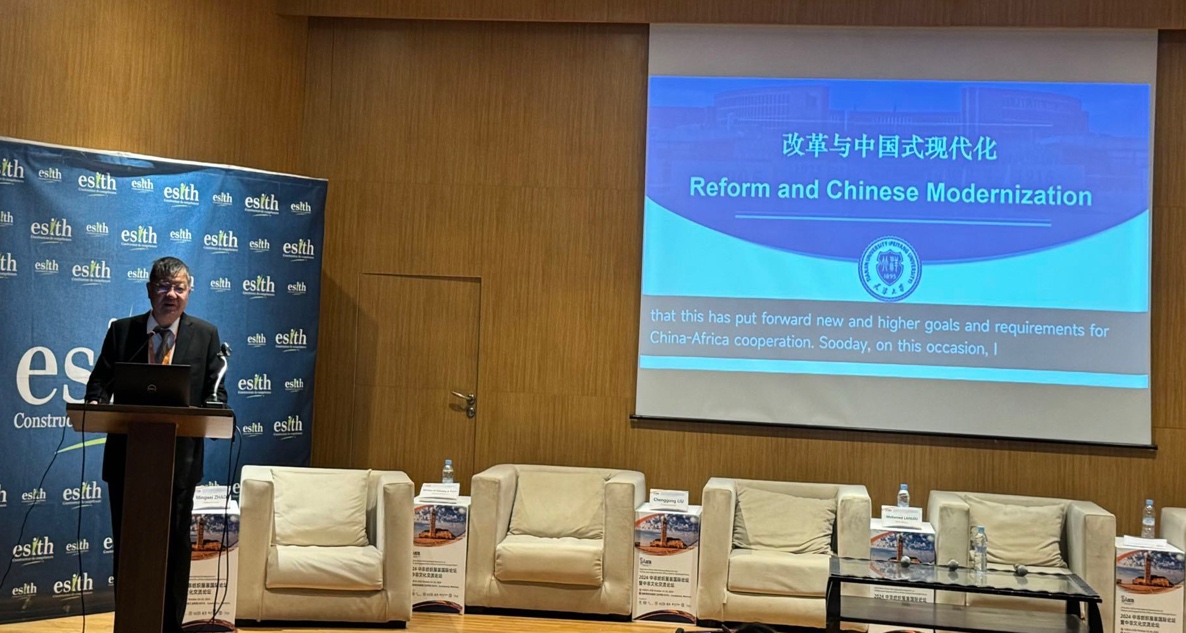 (天津大学beat365中文登录入口院长颜晓峰教授作大会主旨发言) 中国式现代化发展为构建人类命运共同体提供了内在动力。天津大学beat365中文登录入口院长颜晓峰教授受邀在中非纺织服装国际论坛暨中非文化交流论坛上作了题为“改革与中国式现代化”的主旨报告。颜晓峰指出,改革是中国式现代化的内生动力和鲜明标识,进一步全面深化改革,为推进中国式现代化提供了强大动力和制度保障。进一步全面深化改革的总目标和基本要求,内含着新征程上推进中国式现代化的基本框架,我们要贯彻好进一步全面深化改革“六个坚持”重大原则,全面建设社会主义现代化国家,为推动构建人类命运共同体,促进人类文明发展进步作出中国贡献。