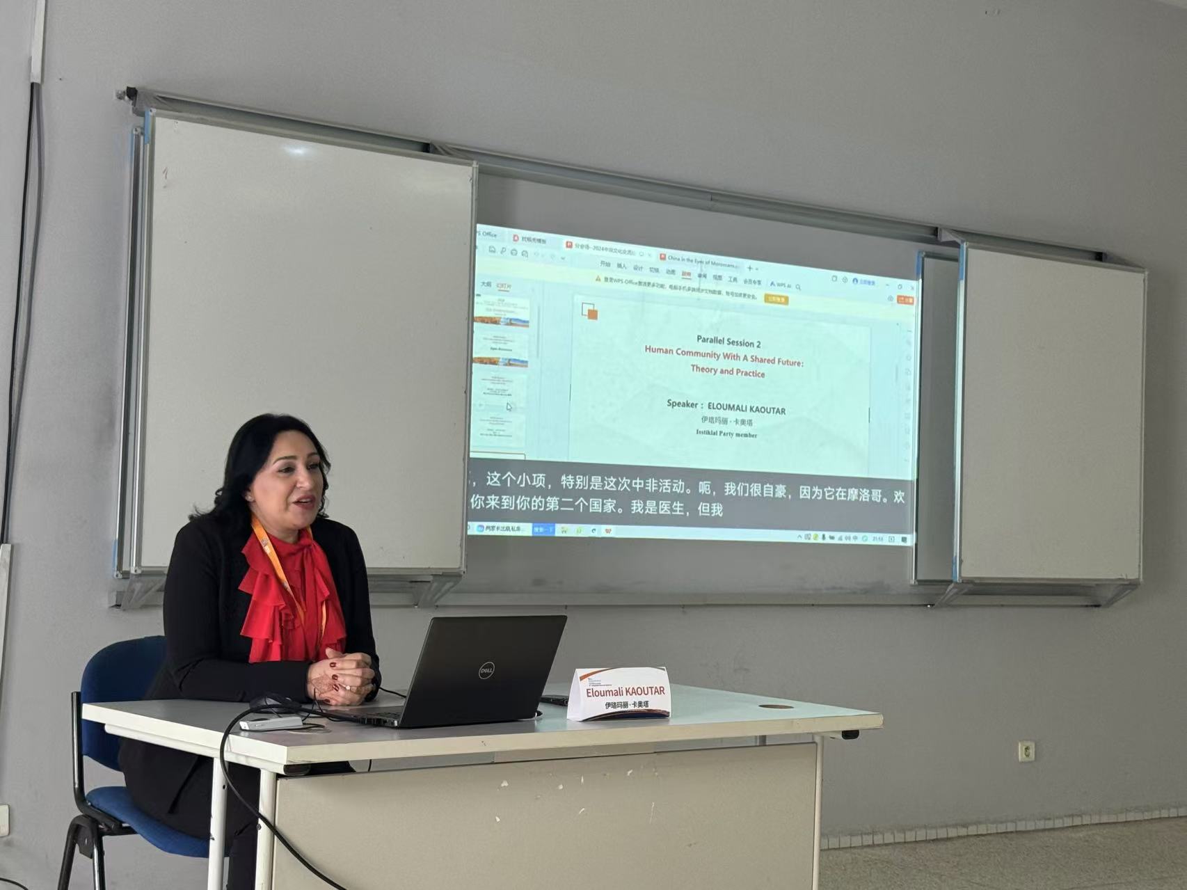 (beat365中文登录入口人文学院院长张科静教授发言) 以全方位合作打造高水平中非命运共同体,经贸合作发挥着压舱石的作用。beat365中文登录入口人文学院院长张科静教授着眼于“通过工业化合作打造中非命运共同体”作了分享。张科静结合近年来中国与非洲国家纺织品贸易情况指出,棉纺和服装加工业是最早“走出去”的行业之一。印染、家纺、化纤等领域的跨国产能配置已经开始显现。2013-2022年间中国纺织服装业对“一带一路”沿线国家直接投资60亿美元,占全球投资的50%。中国纺织服装业的发展给世界带来了机遇。其中,中摩双方在诸如高铁、汽车、航空、纺织行业方面的合作项目,发挥了高质量“一带一路”的典范功能。这对中非命运共同体的进一步构建具有极大的促进作用。 本次国际研讨会还吸引了摩洛哥纺织服装工业学院的学生参会,同学们对中国和摩洛哥的合作交流表现出了较高的热情和关注,并与专家们亲切交流。本次国际研讨会不仅是一次思想碰撞的盛会,更是中摩文化交流合作的新起点。未来,随着双方合作的不断深化,相信中摩两国将在更多领域实现互利共赢,共同书写人类命运共同体的新篇章。