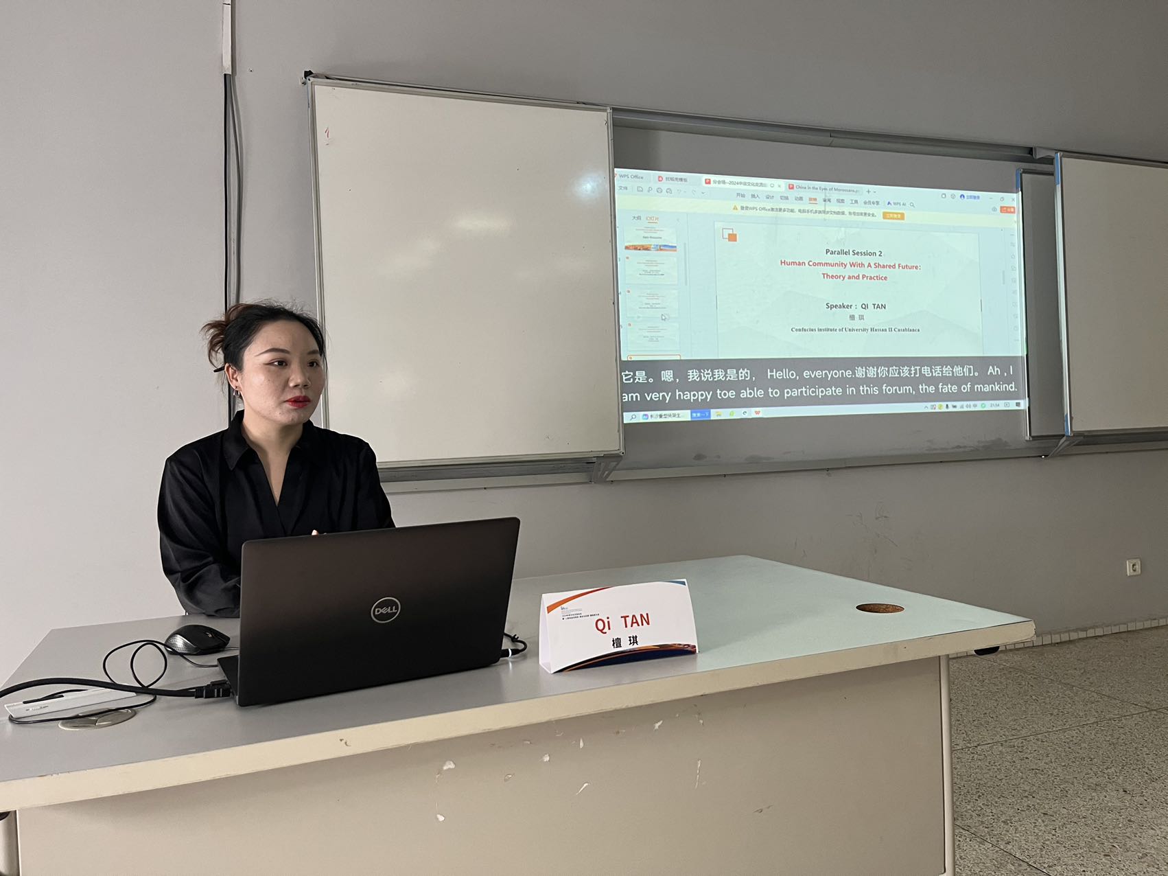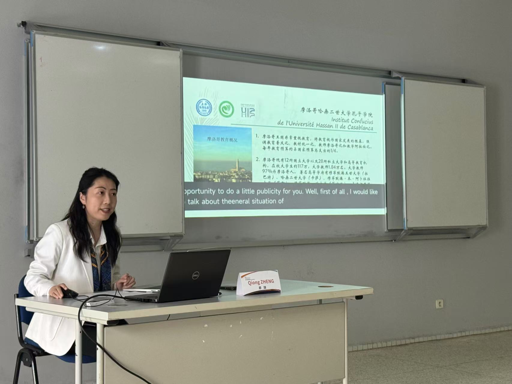 (摩洛哥哈桑二世大学孔子学院中方院长郑琼发言) 摩洛哥哈桑二世大学孔子学院中方院长郑琼介绍了摩洛哥哈桑二世大学孔子学院的教学、师资、学生培养、考试、奖学金、对外交流、文化活动、各类比赛等方面的情况郑琼指出,孔子学院以汉语教学为基础,以学术交流为特色,在摩洛哥广泛开展文化宣传活动和学术研讨活动。在学术交流方面,自2015年开始,哈桑二世大学与上海外国语大学轮流举办“丝绸之路的两端—中国与摩洛哥”国际学术研讨会,在汉语-阿拉伯语翻译、区域国别研究、文化对比、外语教学等领域开展了有效研究,孔院在传播中国语言文化、讲好中国故事上取得了良好的进展,并在中摩文化界和学术界产生了积极影响,为中摩两国的合作贡献了力量。